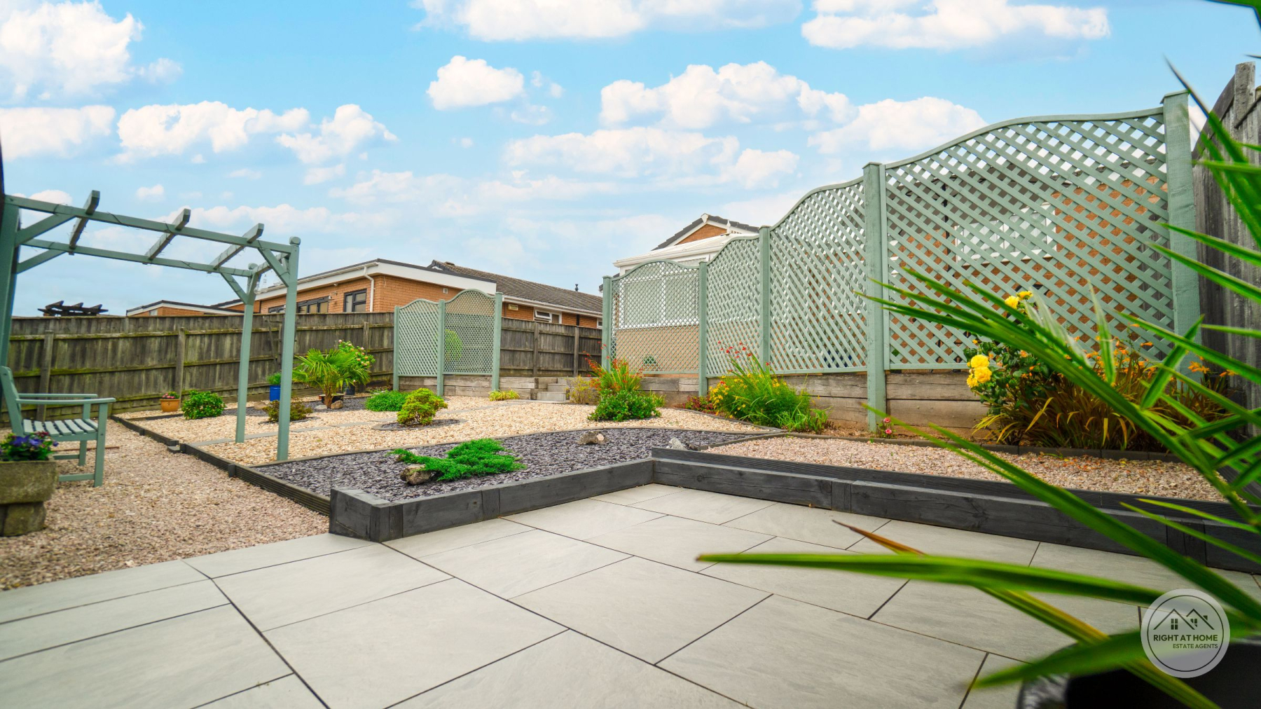 Outside, the home impresses with beautifully landscaped front and rear gardens. A resin-bound driveway offers ample parking, complemented by an attractive array of plants and shrubs, and access to a garage with a useful utility area.