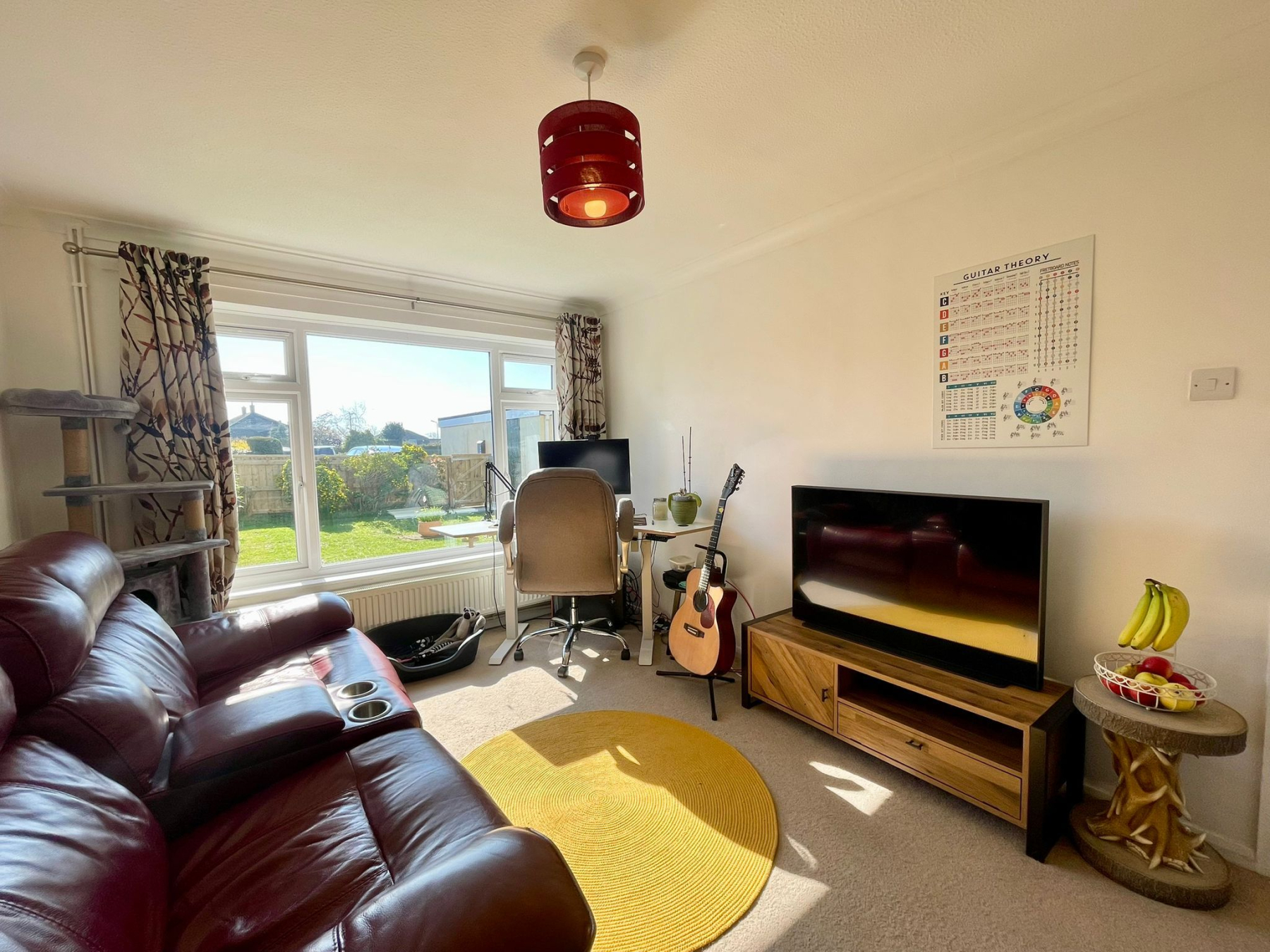 13'8 x 9'5" ( 4.17m x 2.9m) light coloured carpet, upvc window to front aspect overlooking the garden, tv point.