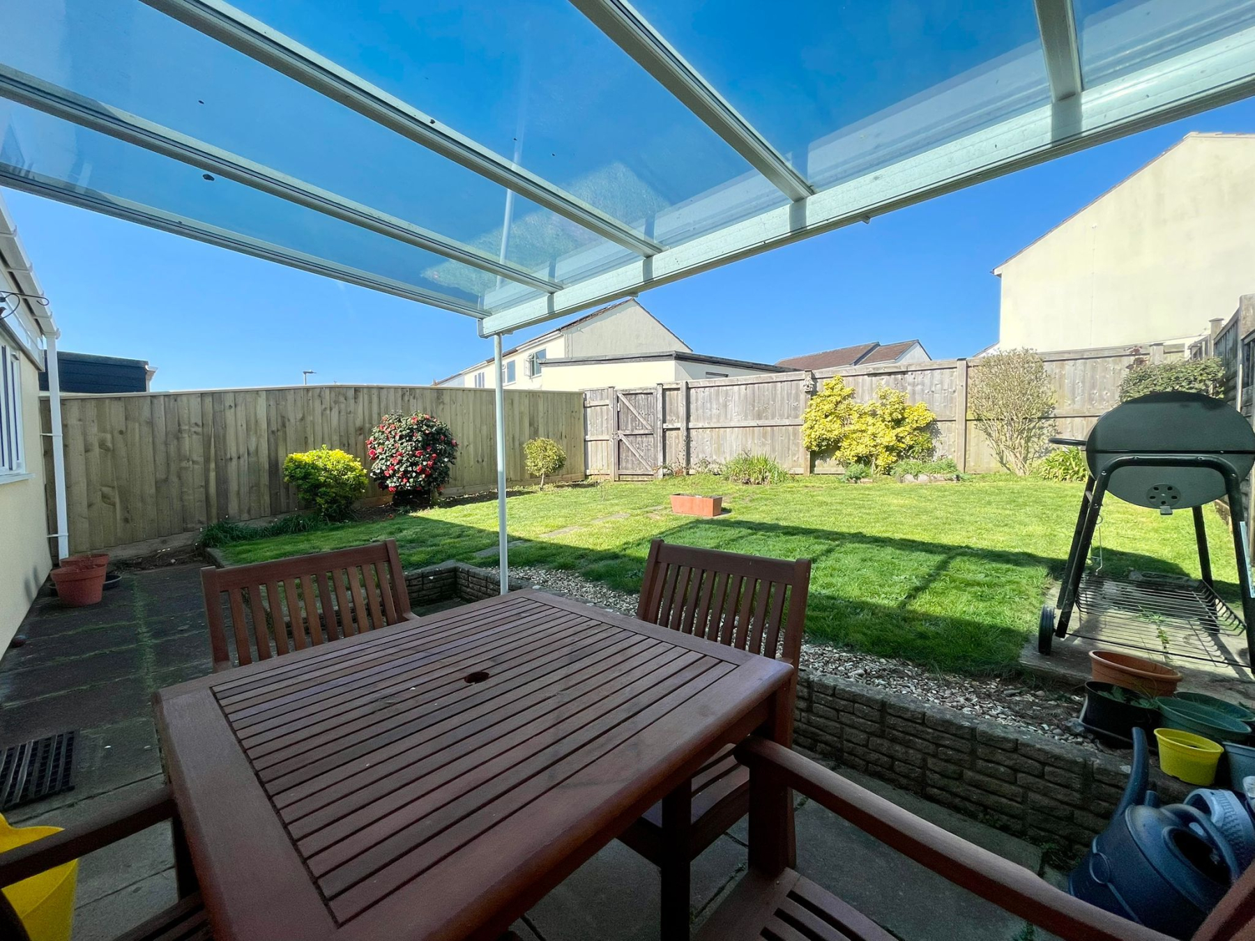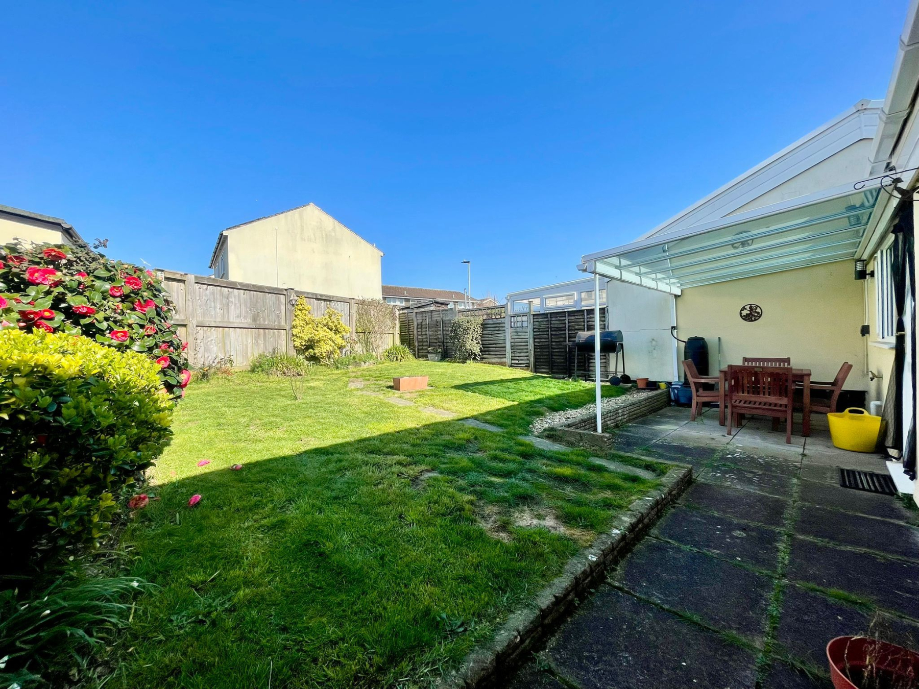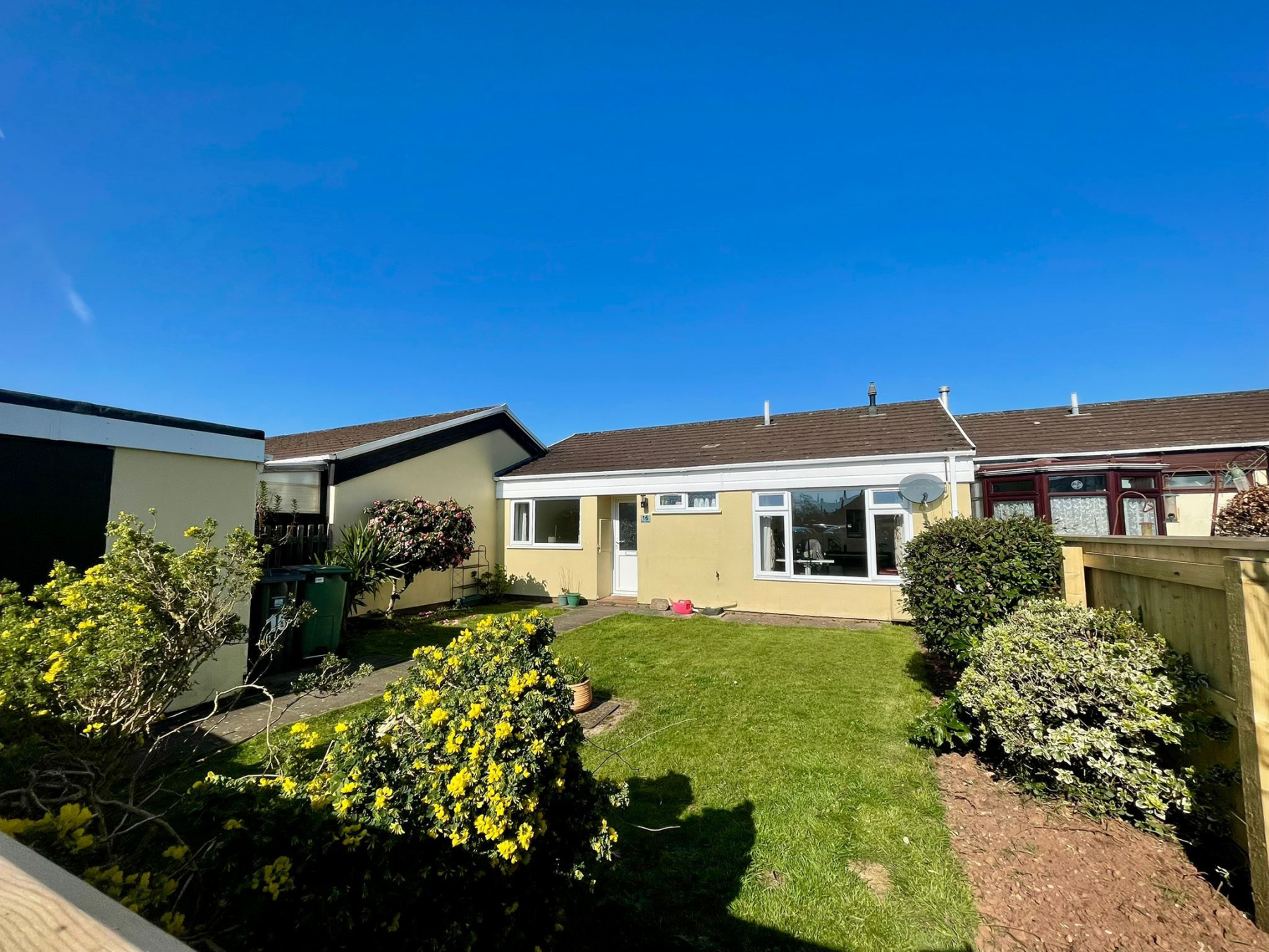 A fully enclosed rear garden with a high timber fence surround. From the kitchen/diner a double glazed opens onto a patio area ideal for alfresco dining, this then leads you onto the main area of the garden which is mainly laid to lawn there is also a gate which gives you pedestrian access to the rear of the bungalow.