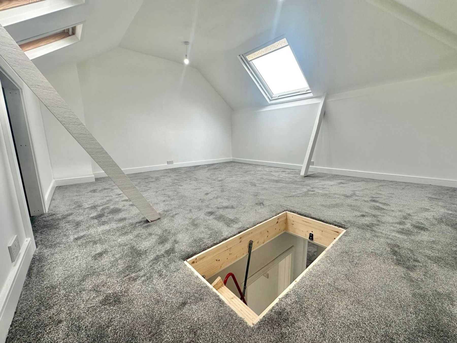 A particular highlight of the home is the large, carpeted loft space, accessed via a convenient drop-down ladder. While this space cannot be classified as a bedroom, it offers excellent additional flexibility and could be ideal for use as a hobby room, home office, snug, or simply as generous, easily accessible storage.