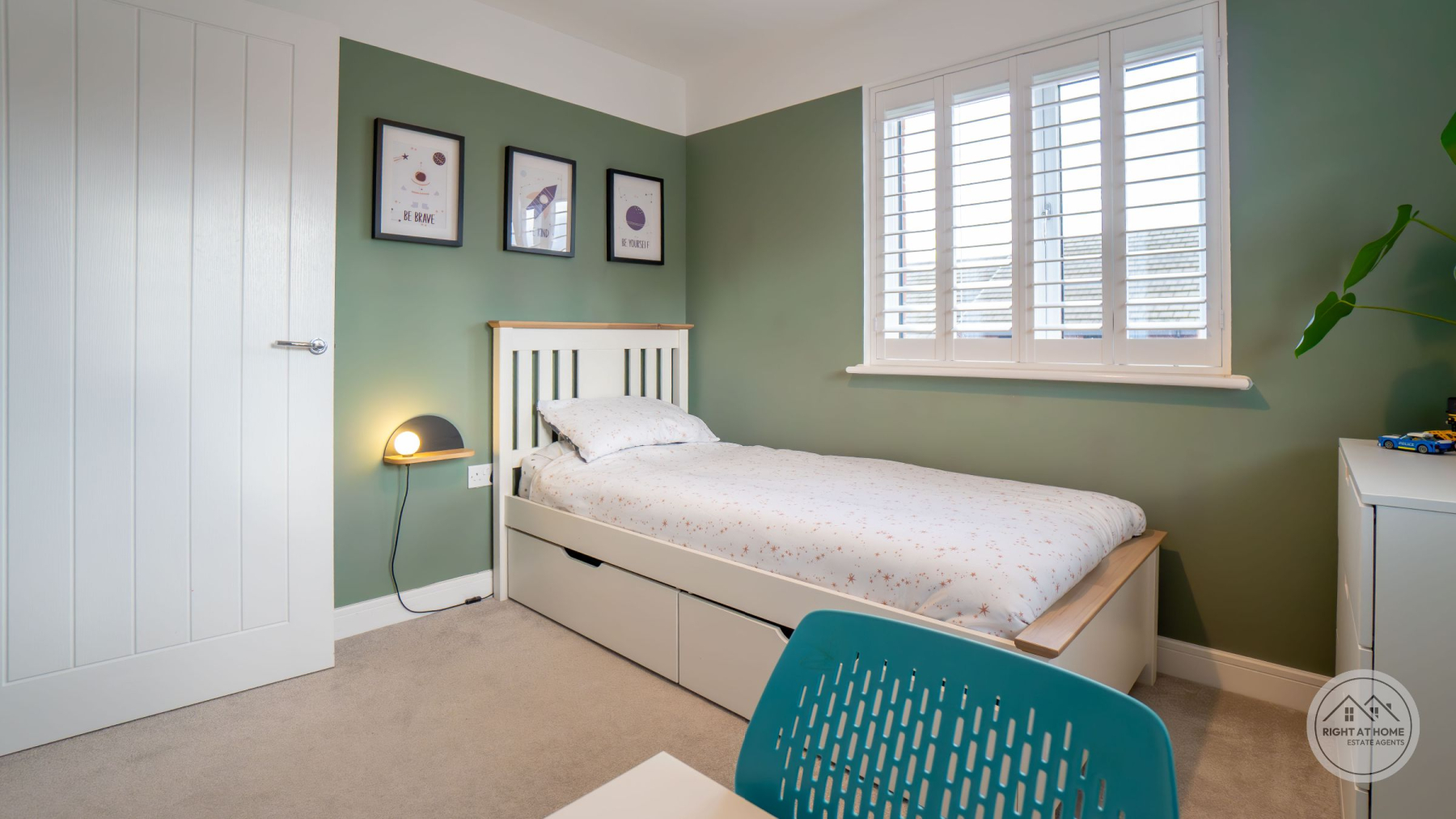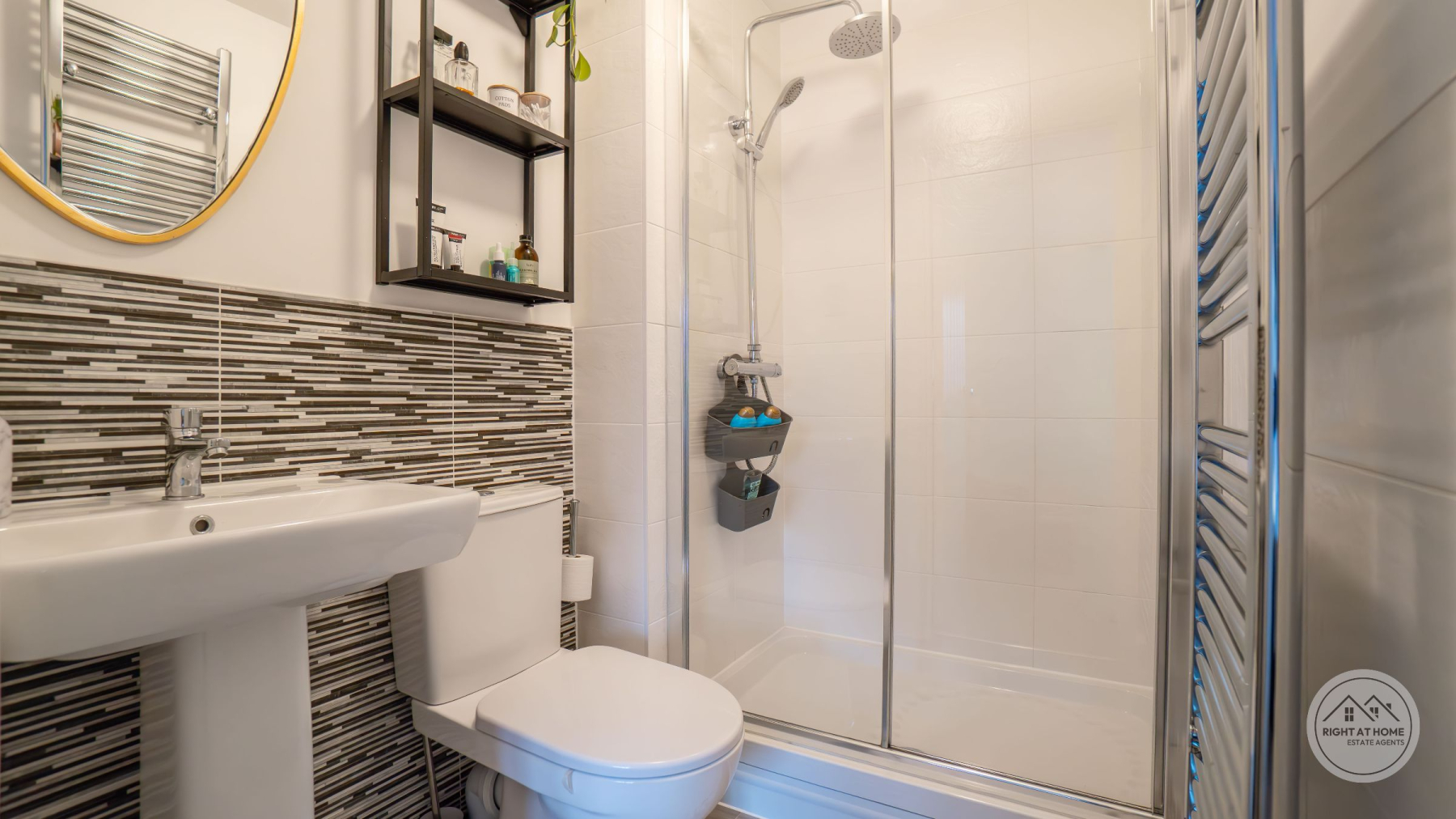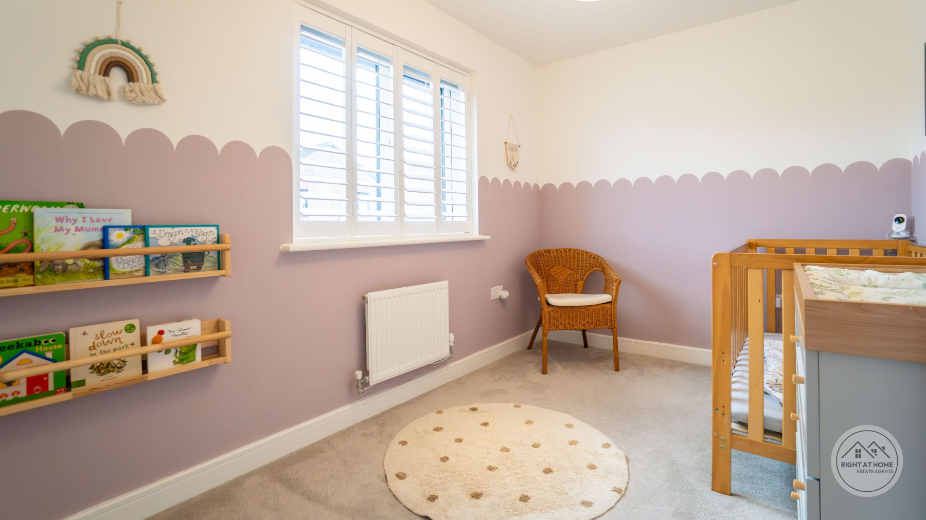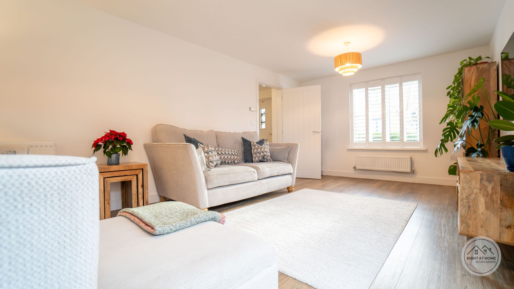 A newly enclosed, south facing rear garden offers a secure and peaceful outdoor area, featuring a patio space, grassed lawn and a composite decking area, allowing for versatile outdoor living, play and alfresco dining. Additional convenience is provided by the understairs storage cupboard, a double driveway with an electric EV charger, and a garage offering ample parking and extra storage. The entire home benefits from fitted window shutters, adding style, privacy and energy efficiency. Heating is supplied through E.ON district heating, offering reliable and efficient warmth throughout the property.