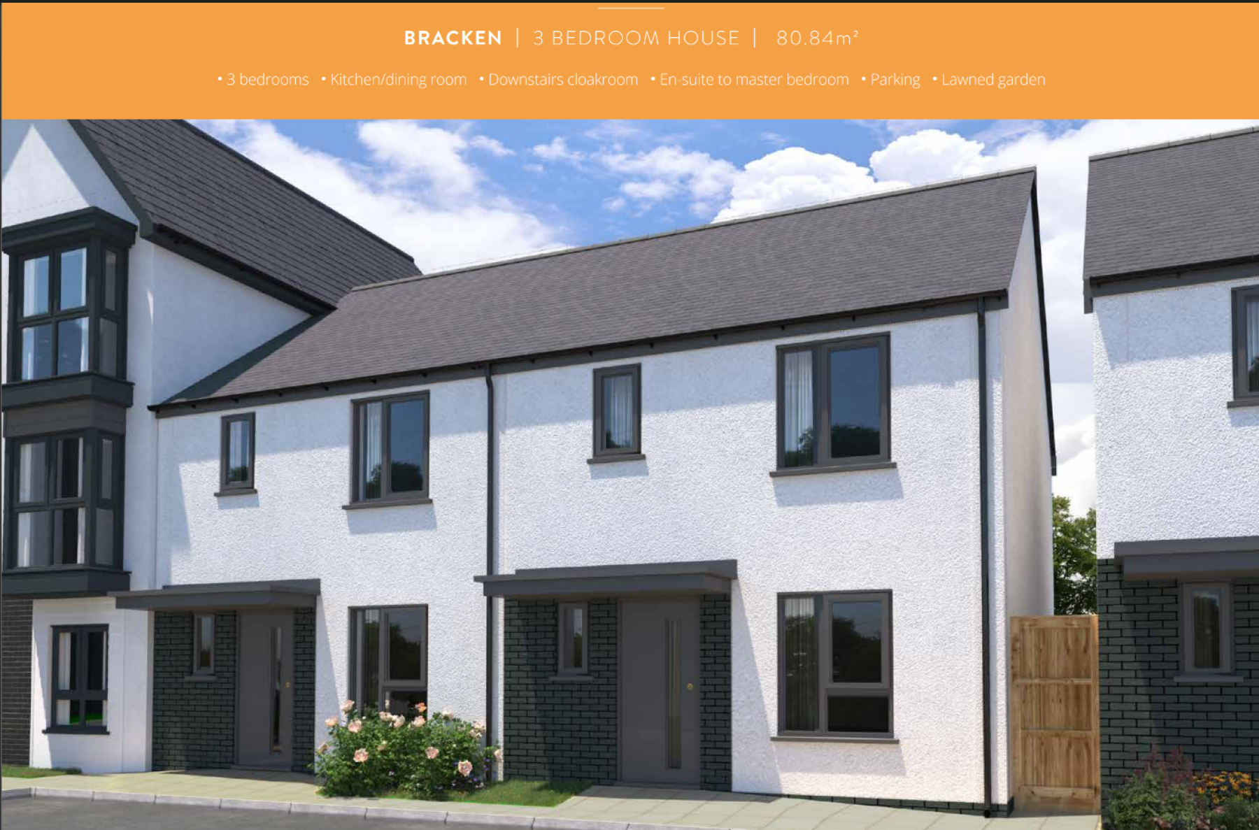 The Bracken is a 3 bedroom home with a downstairs cloakroom, kitchen/dining room and separate lounge with double doors leading into the garden. The first floor benefits from a master bedroom with en-suite, bedroom 2, bedroom 3 and separate bathroom.