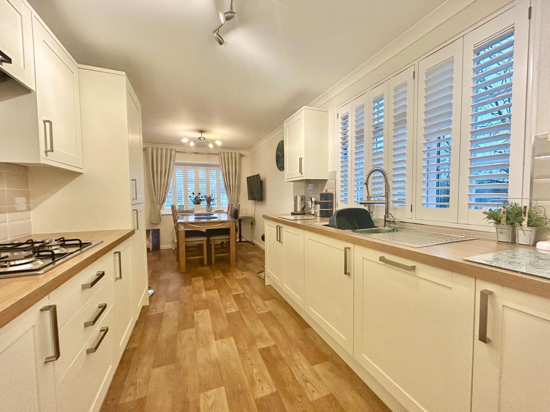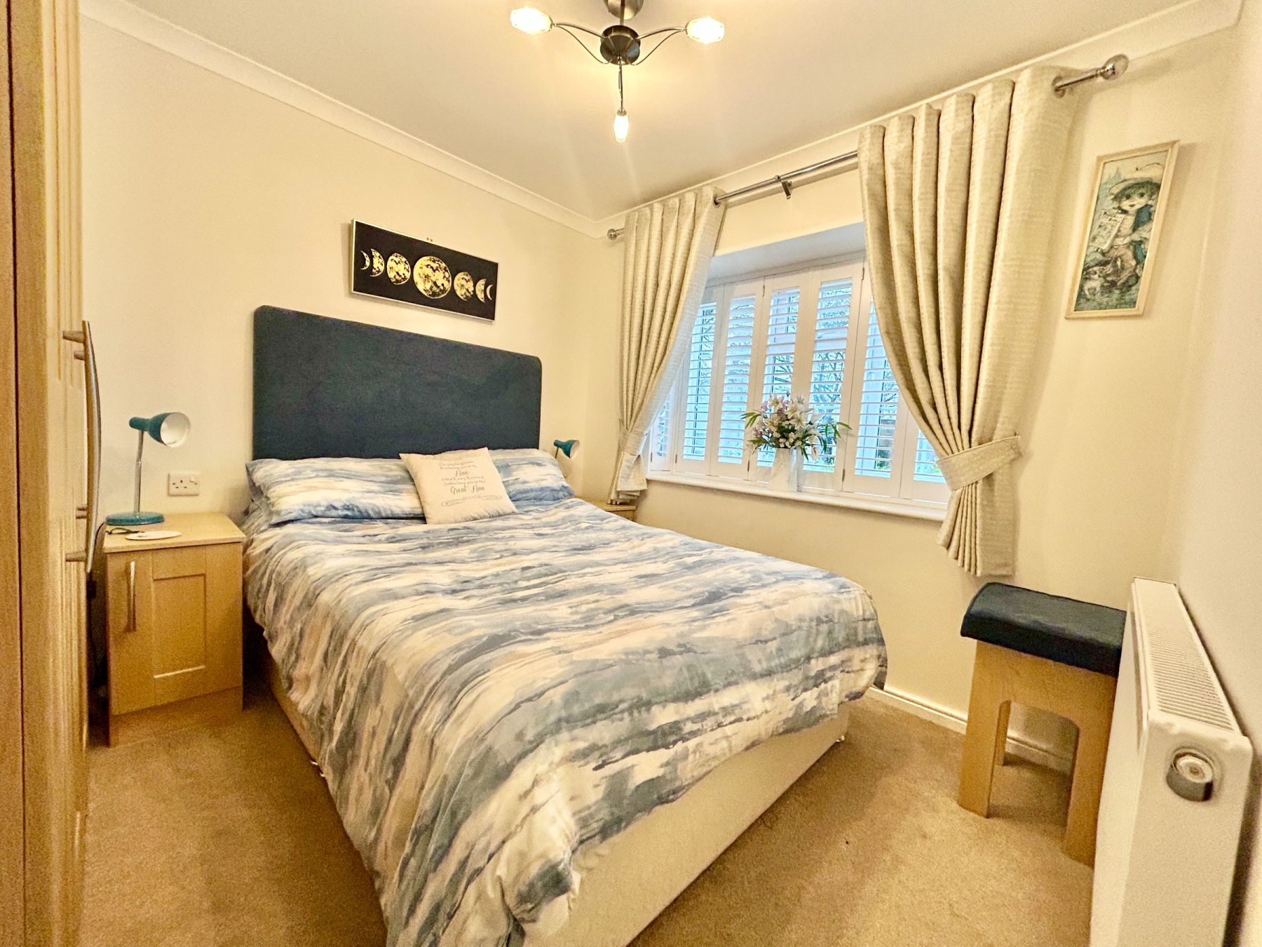 The accommodation comprises two double bedrooms, including a master bedroom with en-suite shower room, a contemporary kitchen/diner with fully integrated appliances, a small study, utility room, and well-proportioned living space that opens onto a decked garden area, ideal for relaxing or entertaining. The property is offered fully furnished, providing a true turnkey opportunity, and further benefits from two allocated parking spaces.