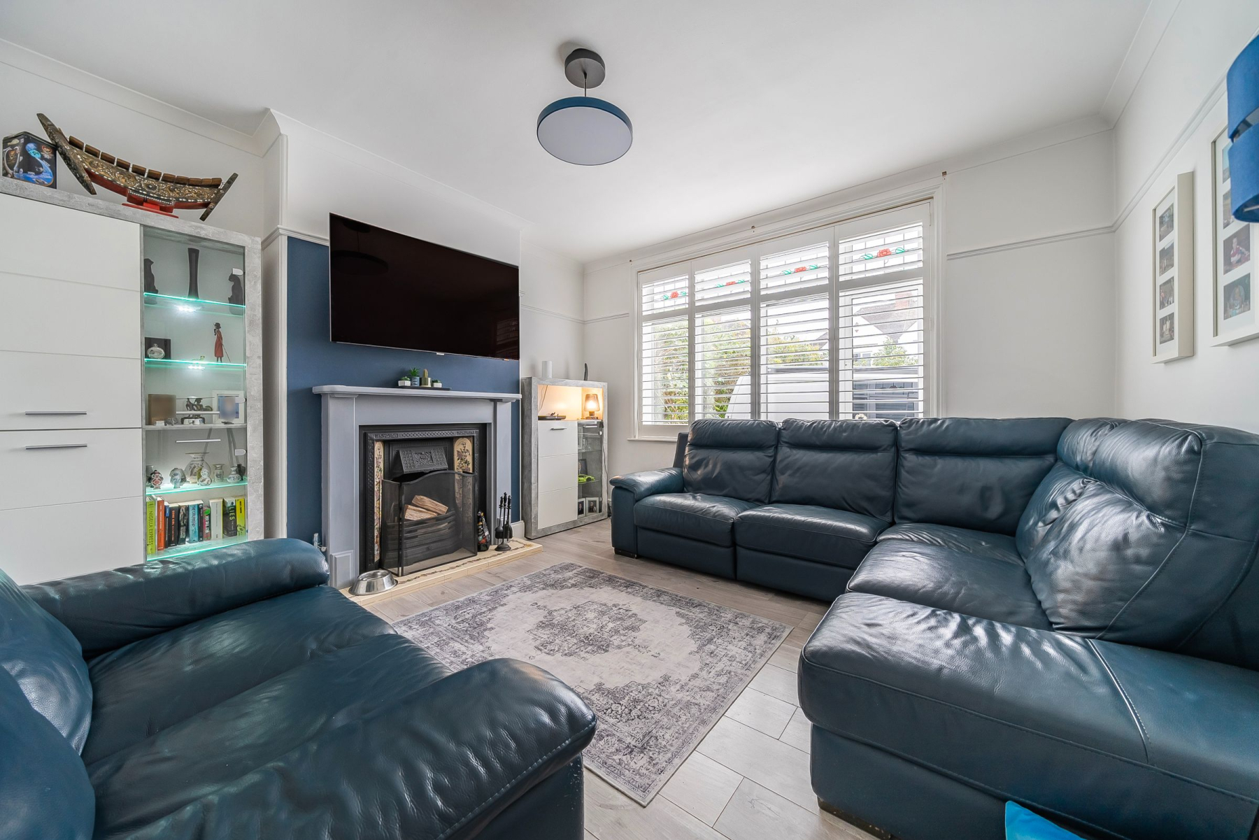Beautiful original feature fireplace, Large window to the front aspect, custom made new England style blinds, underfloor heating.