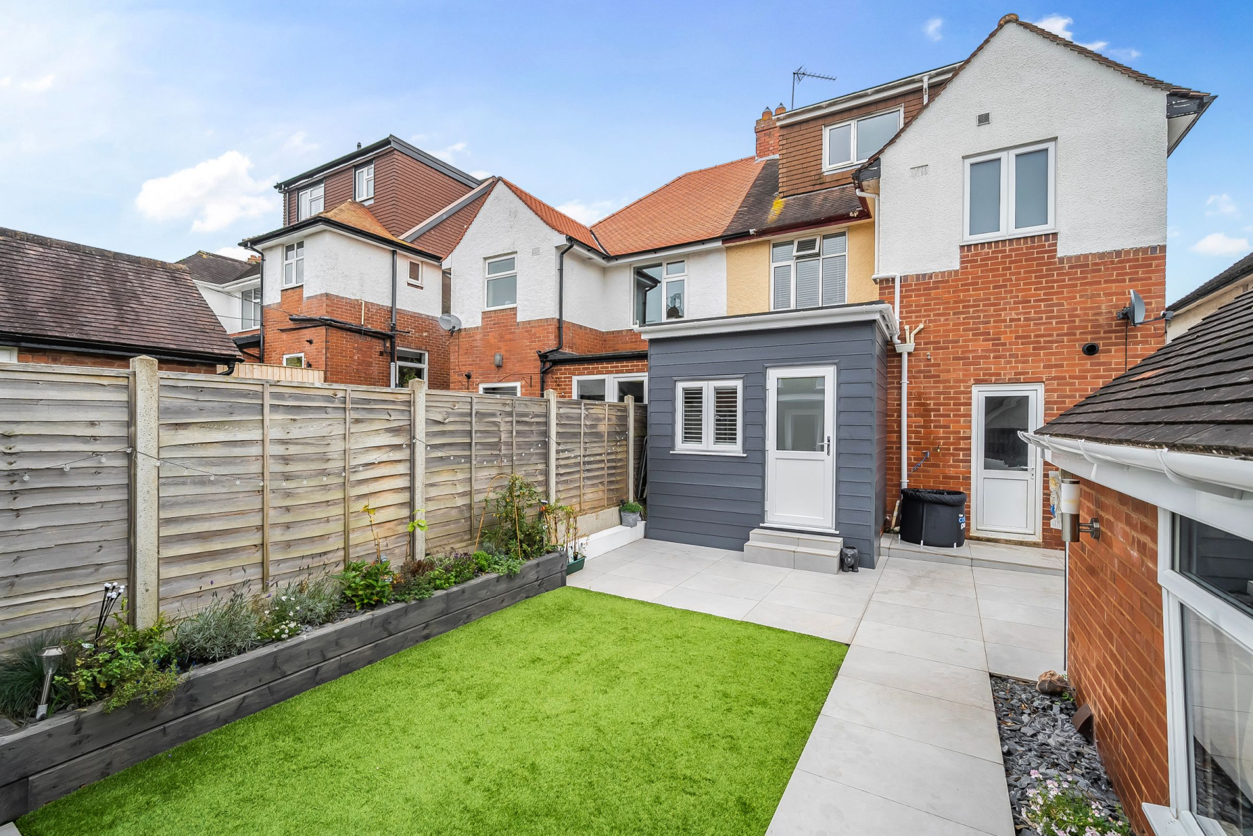 Externally, the property benefits from a brick-paved driveway providing off-road parking for up to three vehicles, a garage with light and power, and side access to a superb south-facing rear garden. This beautifully landscaped outdoor space features a Porcelanosa patio, an Astroturf lawn, raised beds, and a designated barbecue and entertaining area. The garden also includes a detached garden room with polished plaster walls, power, and broadband, making it ideal as a home office or studio.