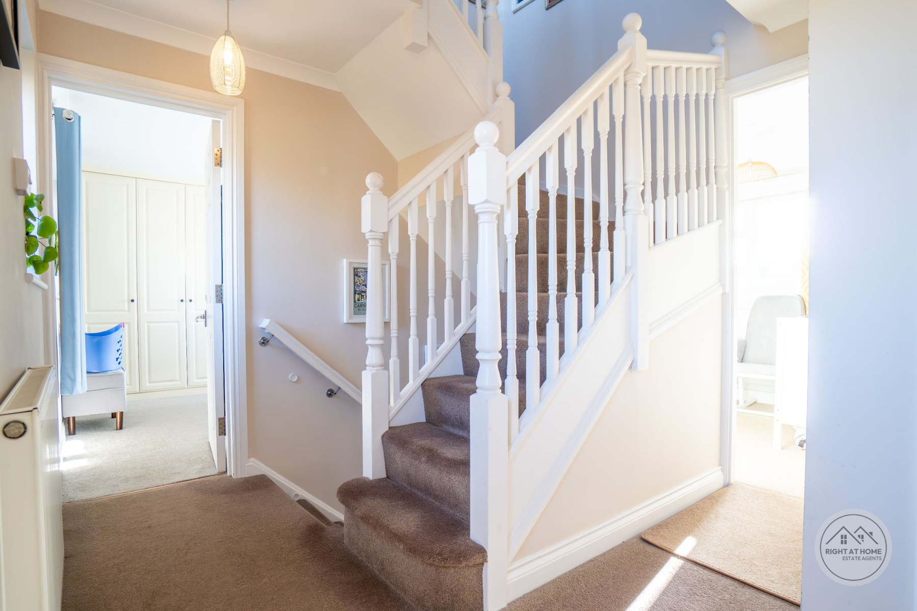 Upon entering the property, you are welcomed by a central entrance hall providing access to the principal ground floor rooms. To the right, a spacious dual-aspect living room is filled with natural light, creating a warm and inviting setting for both everyday family life and entertaining guests. The accommodation flows through to the open plan kitchen/dining room, offering a practical yet sociable layout that works equally well for family meals and more formal gatherings. The ground floor further benefits from a convenient downstairs WC and a useful utility area, adding valuable practicality for busy households.