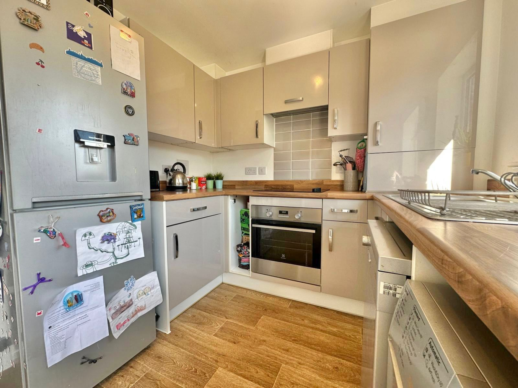 The property offers two well-proportioned double bedrooms and a stylish family bathroom to the first floor. On the ground floor, there is a welcoming living room and a spacious open-plan kitchen/dining room, perfectly designed for both everyday living and entertaining. A convenient downstairs W/C adds to the practicality of the layout. To the rear, the property benefits from an enclosed garden, ideal for children, pets or alfresco dining, while two allocated parking spaces provide ease and convenience.
