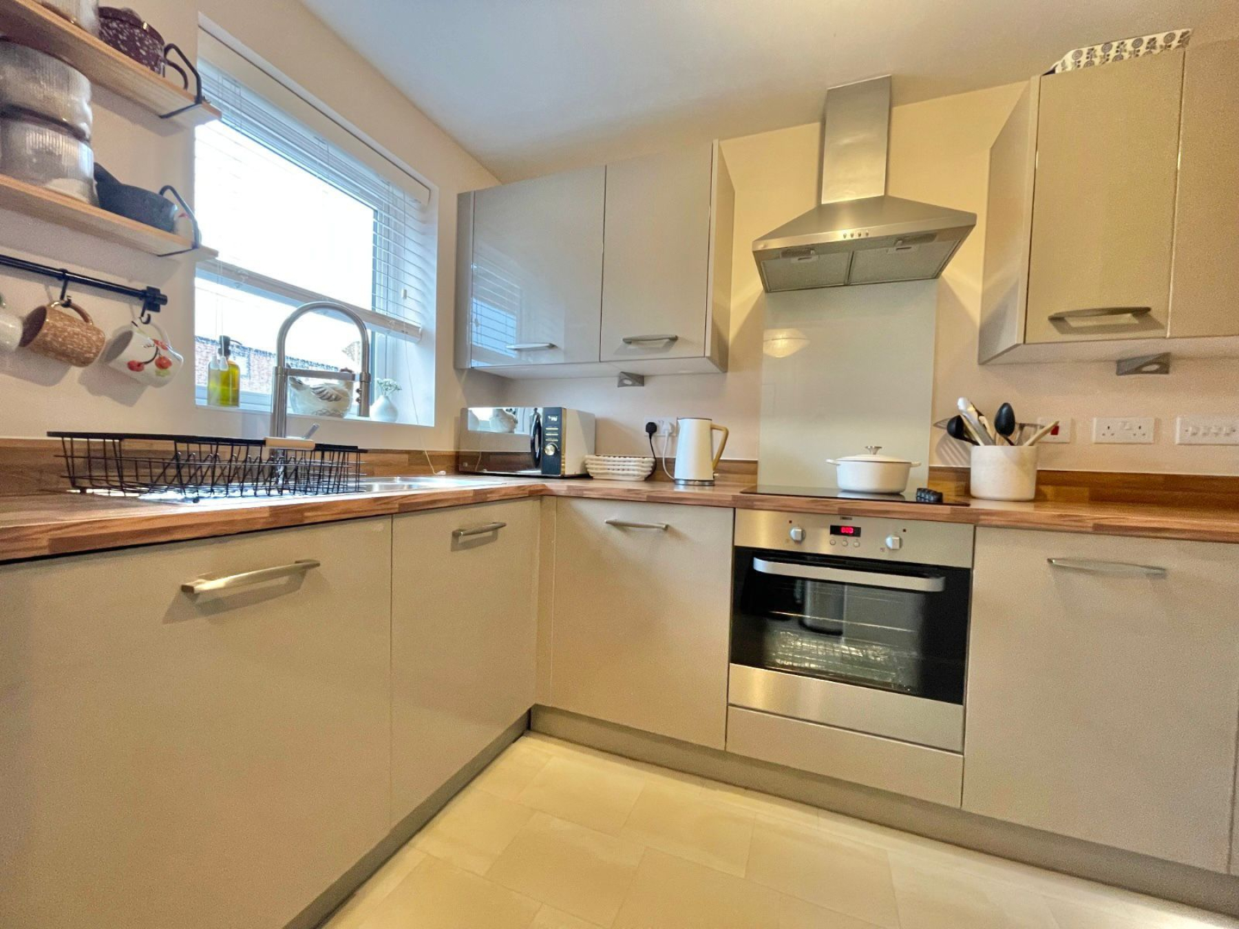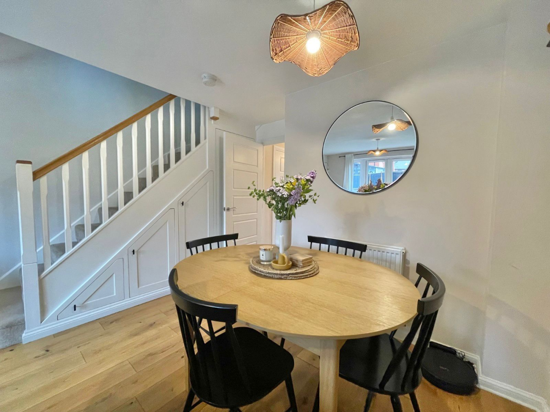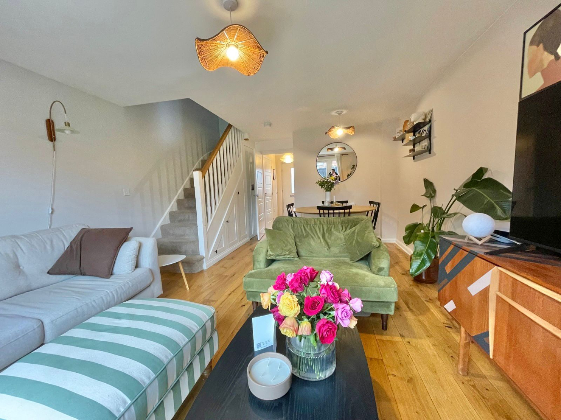 The ground floor welcomes you with a bright and spacious lounge/diner, thoughtfully designed to maximise both living and entertaining space. A particularly useful feature is the bespoke under-stairs storage drawers, providing clever and discreet additional storage. The modern fitted kitchen offers ample worktop and cupboard space, ideal for everyday living, while a convenient downstairs W/C enhances the practicality of the layout.