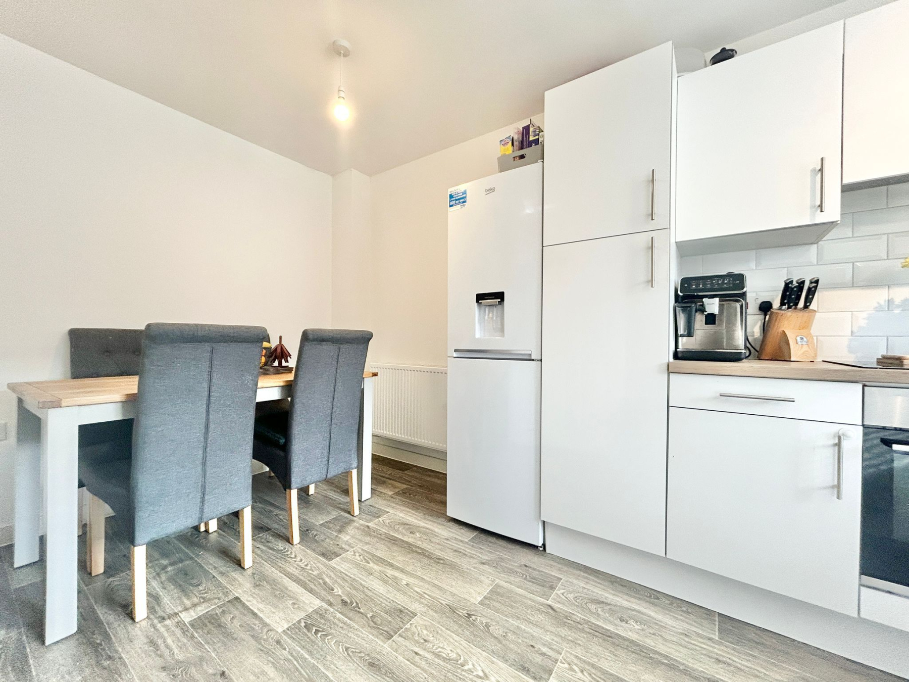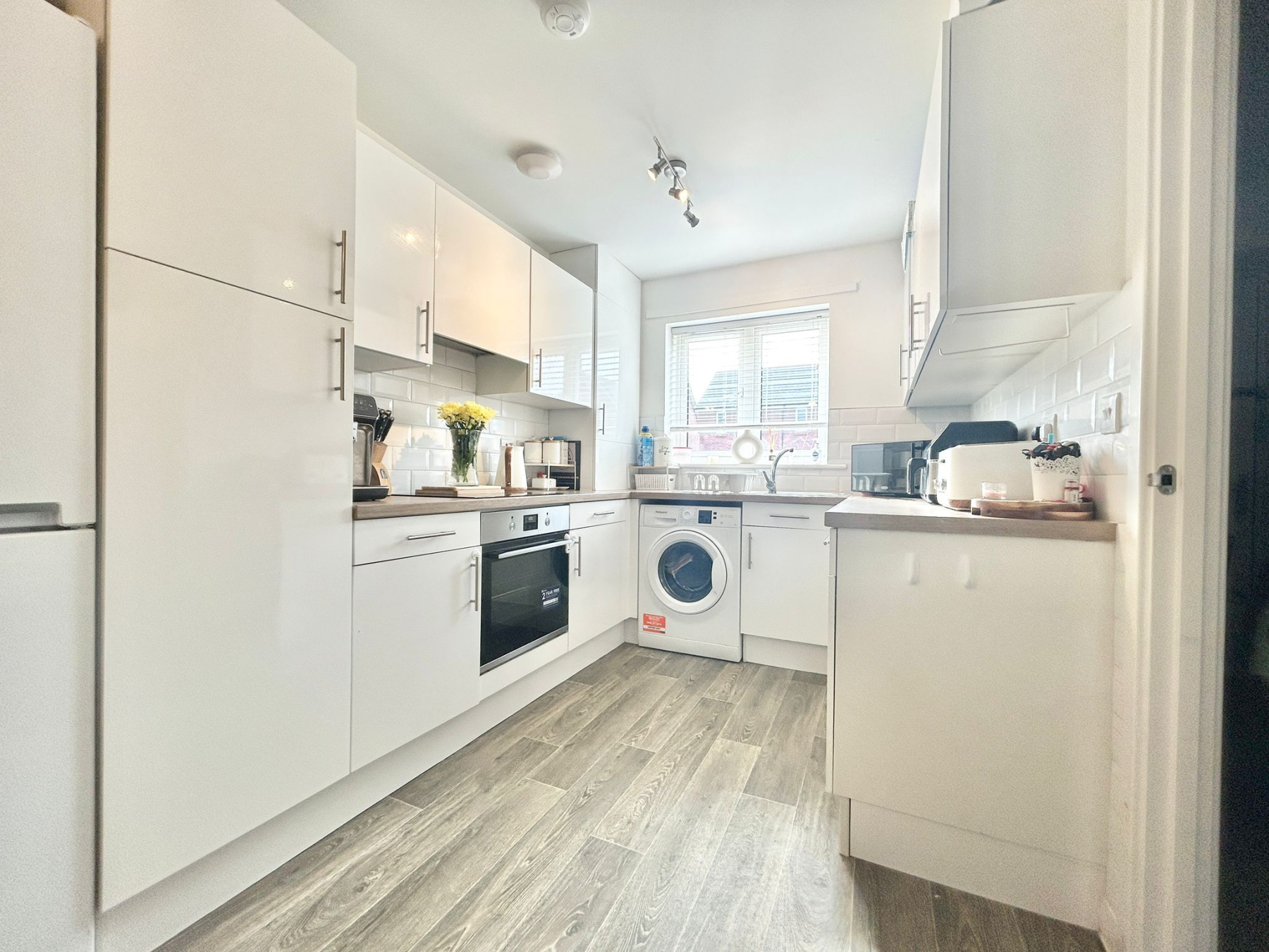 This leasehold property benefits from a long lease with approximately 194 years remaining and is thoughtfully laid out to provide bright and airy accommodation throughout. The ground floor comprises a welcoming entrance hallway, a generous and light-filled living room, a modern kitchen/diner ideal for both everyday family life and entertaining, and a convenient downstairs WC. Upstairs, there are two well-proportioned double bedrooms and a contemporary family bathroom. Externally, the property enjoys an enclosed rear garden, perfect for children, pets or summer dining, along with allocated parking.